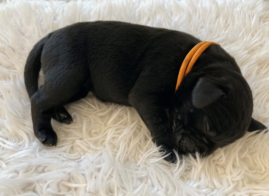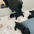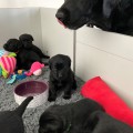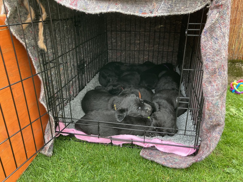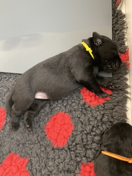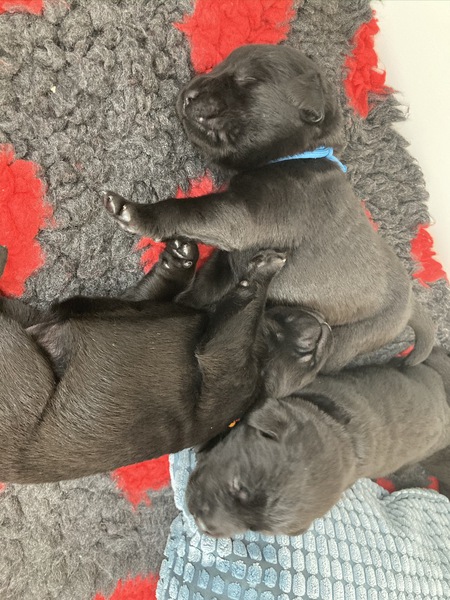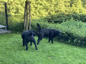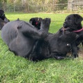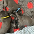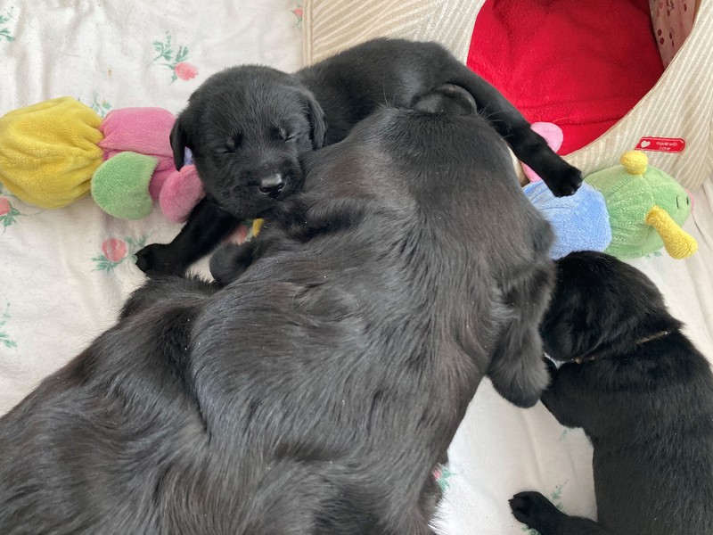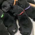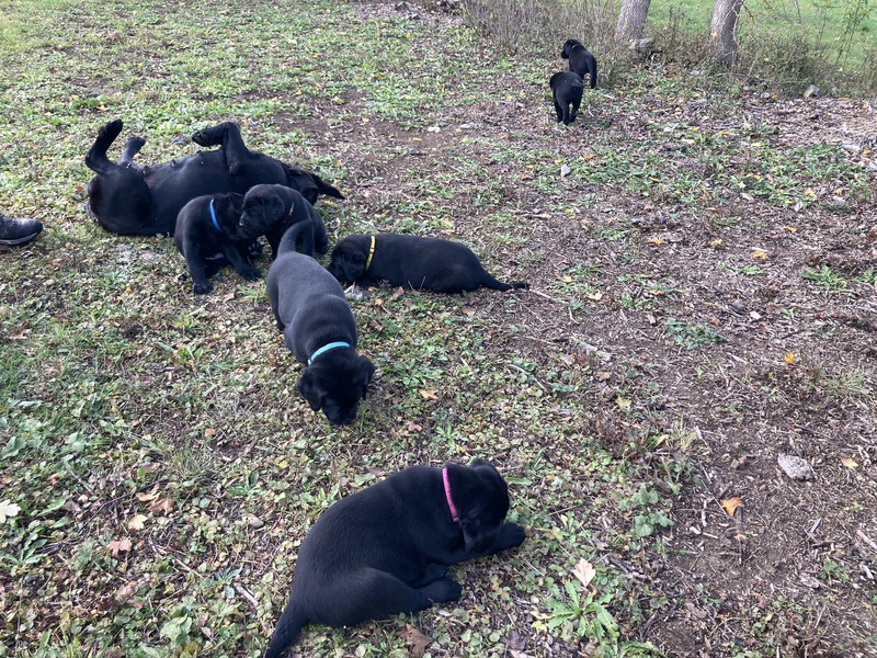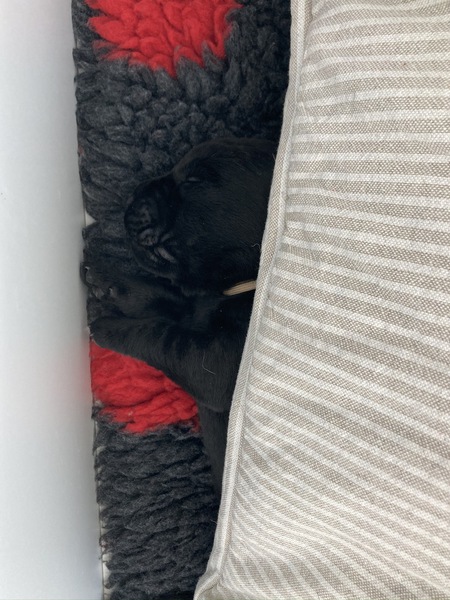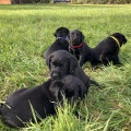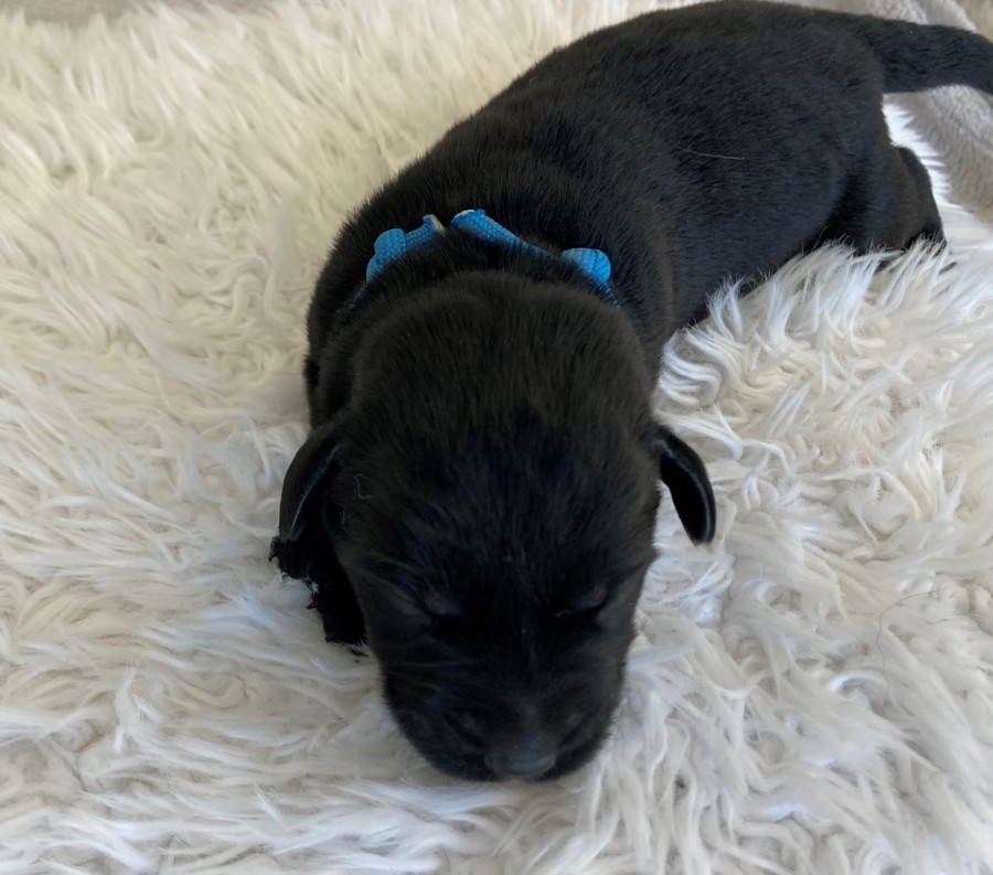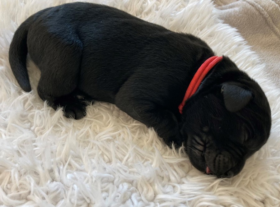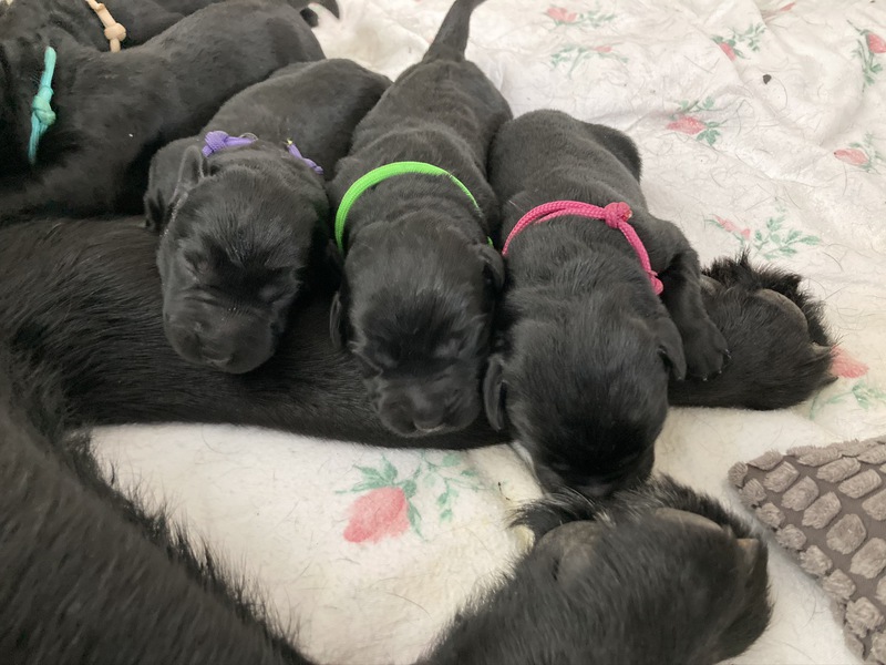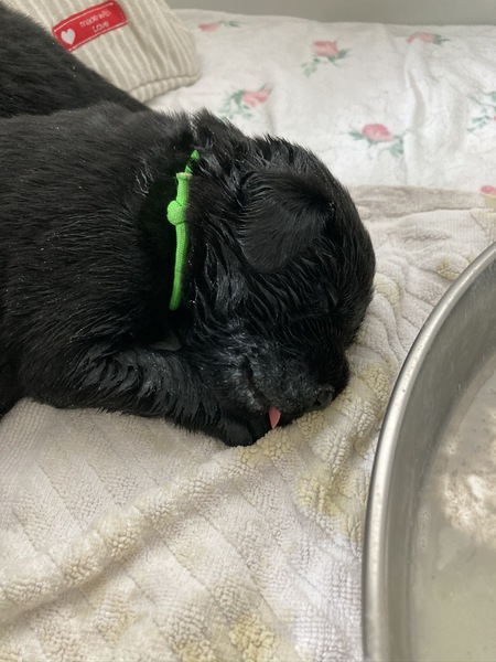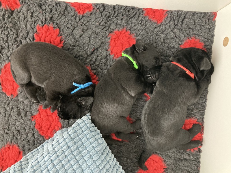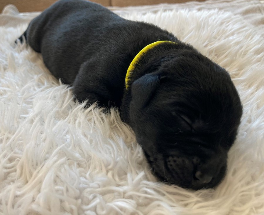 Am vergangenen Montag den 31.08.2020 (Tag 61 der Trächtigkeit) brachte Emma 6 schwarze Hündinnen und 4 schwarze Rüden auf die Welt. Der erste Welpe ließ lange auf sich warten. Trotz anhaltenden Presswehen über mehrere Stunden hatte Emma große Mühe den Welpen auf die Welt zu bringen. Erstaunlicherweise lebte dieser und war topfit. Auch mit dem zweiten Welpen - ein Rüde - hatte Emma zu kämpfen, er steckte lange im Geburtskanal fest. Leider hat er es nicht geschafft. Er brachte stolze 560 g auf die Waage... So entschieden wir uns nach dem 3. Welpen - Emma zuliebe und um die restlichen Welpen nicht zu gefährden - schweren Herzens zu einem Kaiserschnitt. Insbesondere da sich noch weitere 7 Welpen den Weg ins Leben erkämpfen mussten. Eine gute Entscheidung wie sich heraus stellte, denn auch die restlichen Welpen brachten recht hohe Gewichte auf die Waage. Am Ende verbleiben 9 quiekende und fidele Welpen in der Wurfkiste :-)