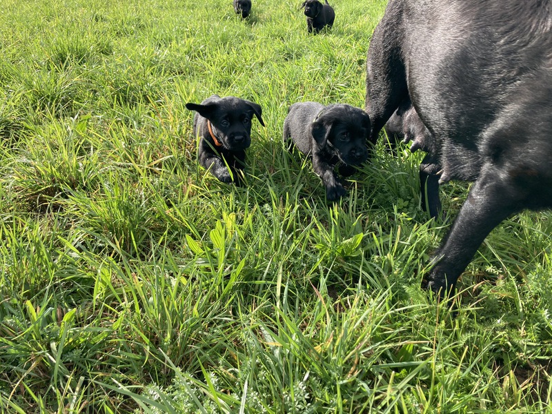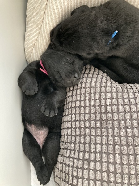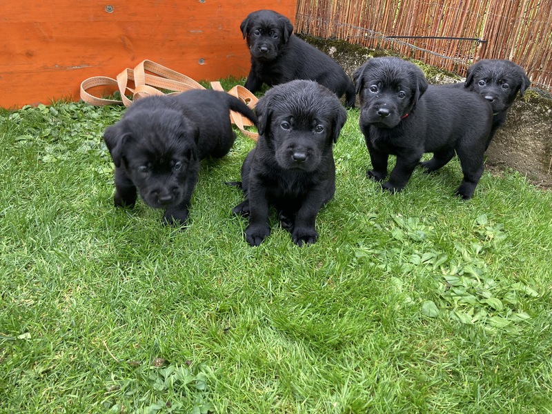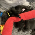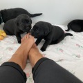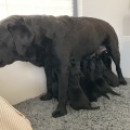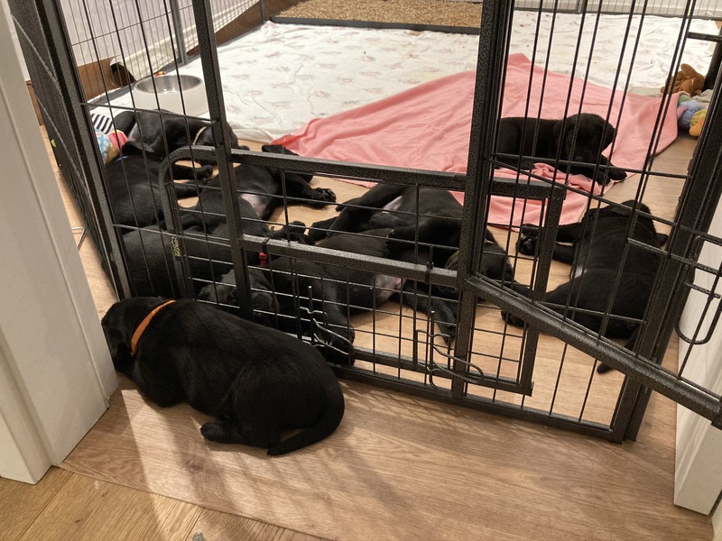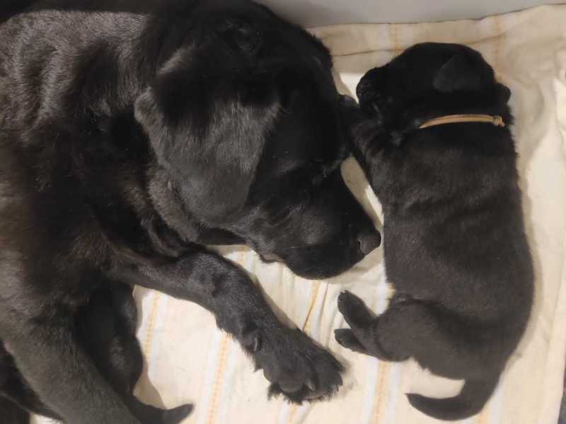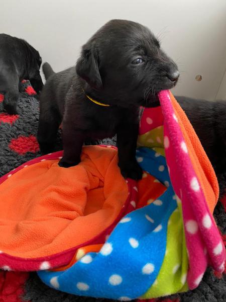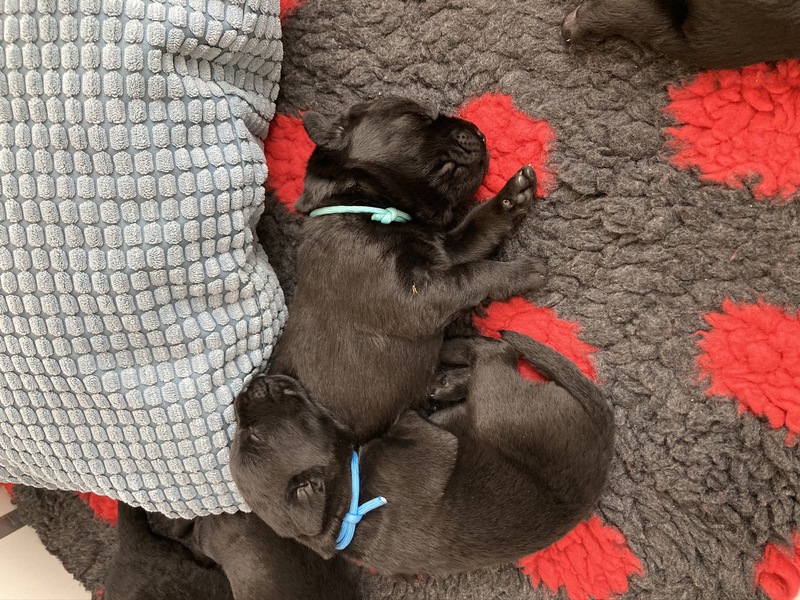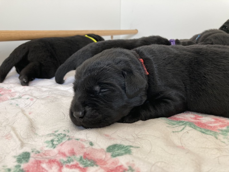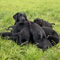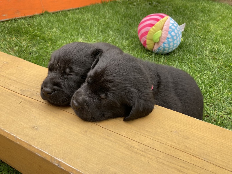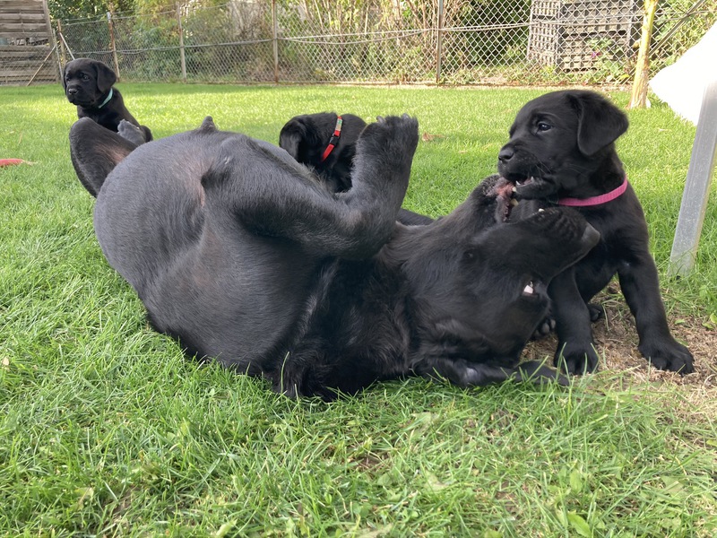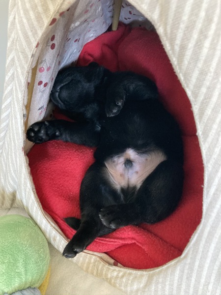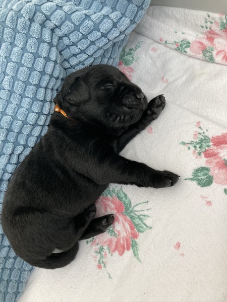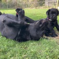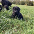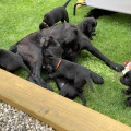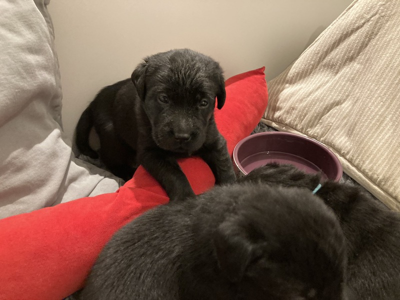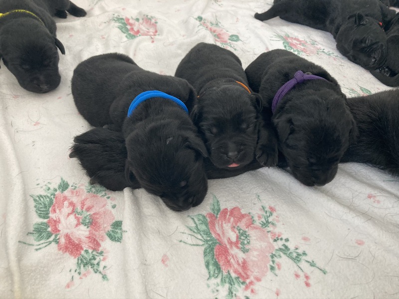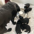 Am vergangenen Montag den 31.08.2020 (Tag 61 der Trächtigkeit) brachte Emma 6 schwarze Hündinnen und 4 schwarze Rüden auf die Welt. Der erste Welpe ließ lange auf sich warten. Trotz anhaltenden Presswehen über mehrere Stunden hatte Emma große Mühe den Welpen auf die Welt zu bringen. Erstaunlicherweise lebte dieser und war topfit. Auch mit dem zweiten Welpen - ein Rüde - hatte Emma zu kämpfen, er steckte lange im Geburtskanal fest. Leider hat er es nicht geschafft. Er brachte stolze 560 g auf die Waage... So entschieden wir uns nach dem 3. Welpen - Emma zuliebe und um die restlichen Welpen nicht zu gefährden - schweren Herzens zu einem Kaiserschnitt. Insbesondere da sich noch weitere 7 Welpen den Weg ins Leben erkämpfen mussten. Eine gute Entscheidung wie sich heraus stellte, denn auch die restlichen Welpen brachten recht hohe Gewichte auf die Waage. Am Ende verbleiben 9 quiekende und fidele Welpen in der Wurfkiste :-)