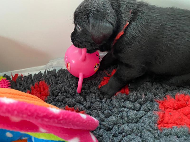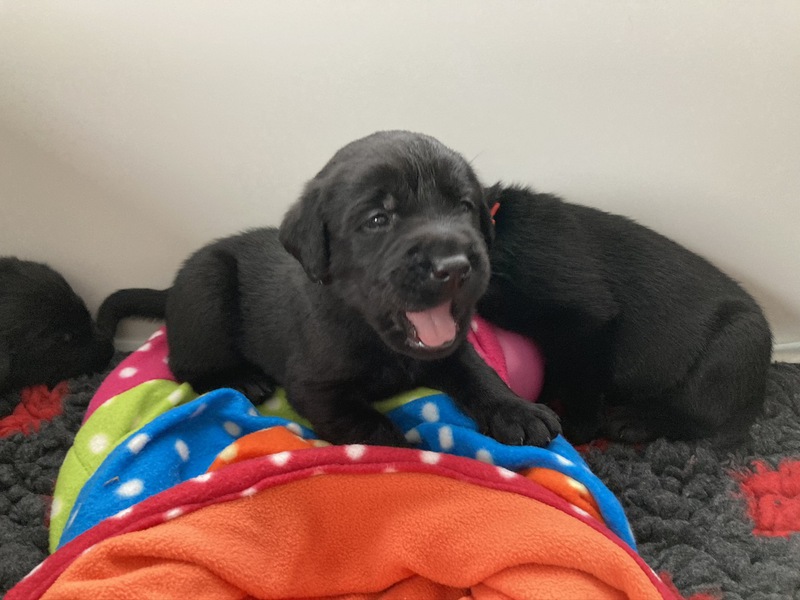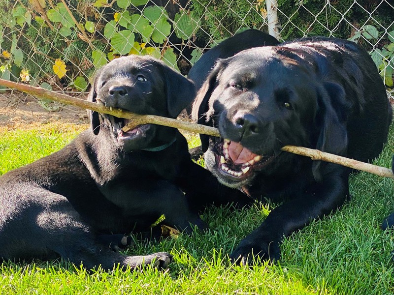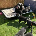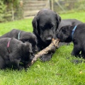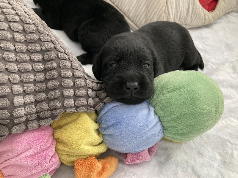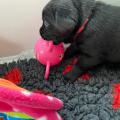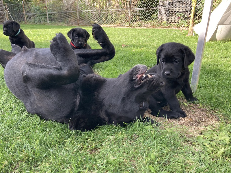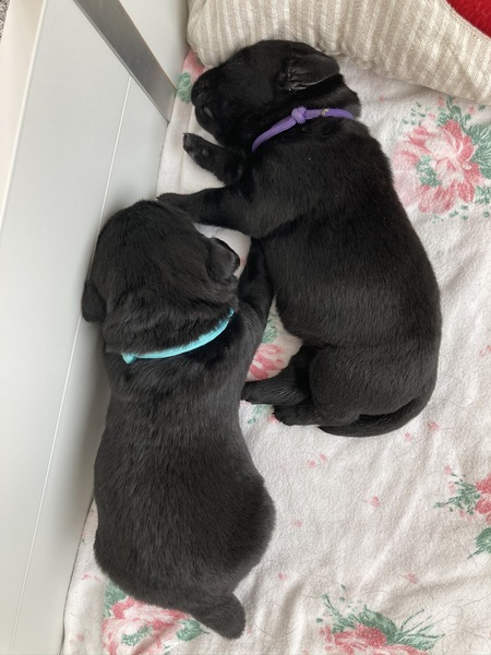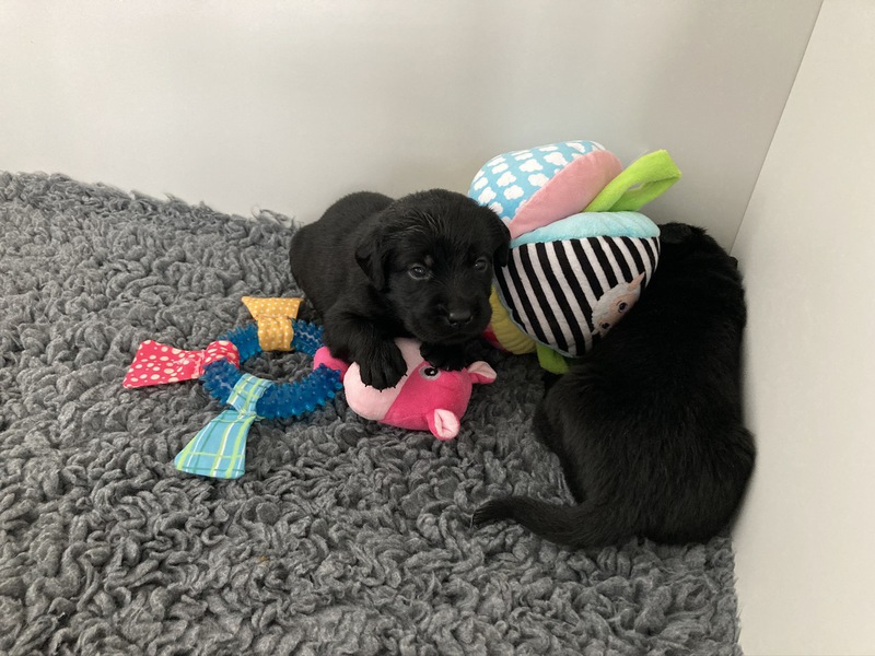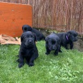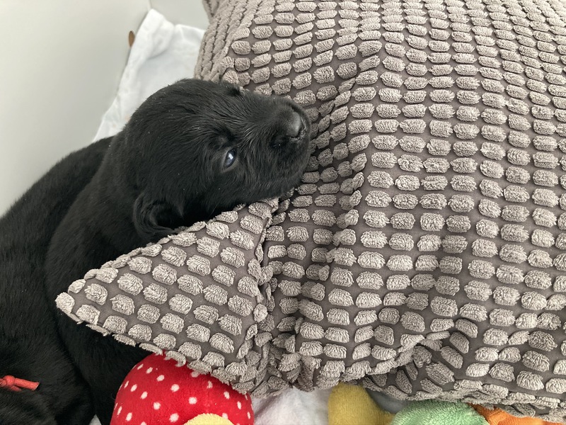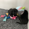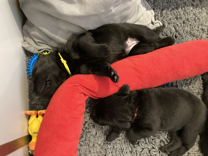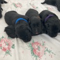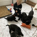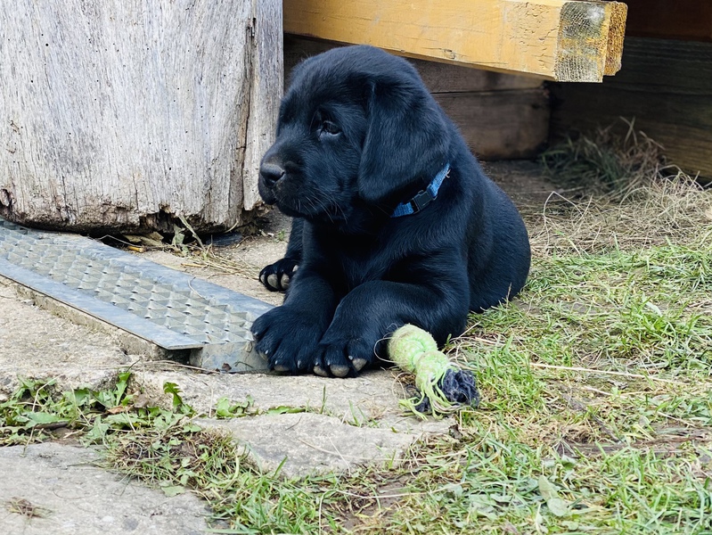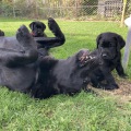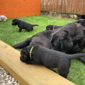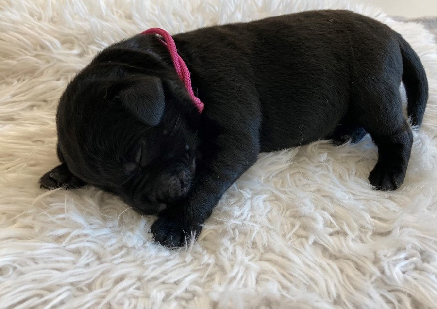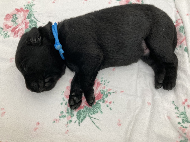 Am vergangenen Montag den 31.08.2020 (Tag 61 der Trächtigkeit) brachte Emma 6 schwarze Hündinnen und 4 schwarze Rüden auf die Welt. Der erste Welpe ließ lange auf sich warten. Trotz anhaltenden Presswehen über mehrere Stunden hatte Emma große Mühe den Welpen auf die Welt zu bringen. Erstaunlicherweise lebte dieser und war topfit. Auch mit dem zweiten Welpen - ein Rüde - hatte Emma zu kämpfen, er steckte lange im Geburtskanal fest. Leider hat er es nicht geschafft. Er brachte stolze 560 g auf die Waage... So entschieden wir uns nach dem 3. Welpen - Emma zuliebe und um die restlichen Welpen nicht zu gefährden - schweren Herzens zu einem Kaiserschnitt. Insbesondere da sich noch weitere 7 Welpen den Weg ins Leben erkämpfen mussten. Eine gute Entscheidung wie sich heraus stellte, denn auch die restlichen Welpen brachten recht hohe Gewichte auf die Waage. Am Ende verbleiben 9 quiekende und fidele Welpen in der Wurfkiste :-)
