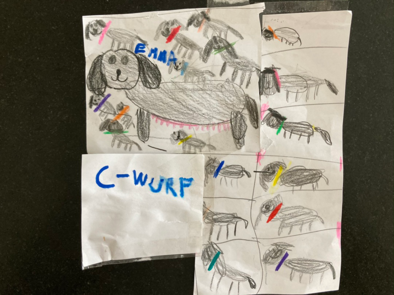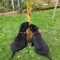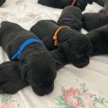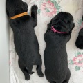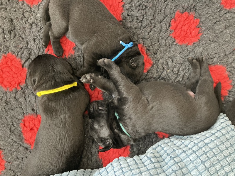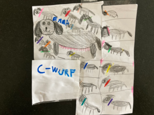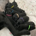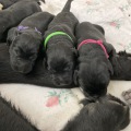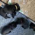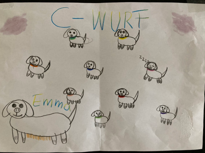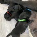 Über diese beiden Bilder zweier zukünftiger Welpenbesitzerinnen habe ich mich ganz besonders gefreut. Es zeigt unsere C-chen auf einen Blick, mit den farblich passenden Halsbändern. Mama Emma darf natürlich auch nicht darauf fehlen.