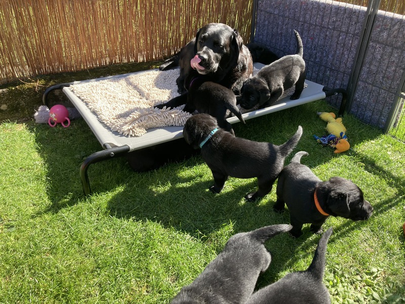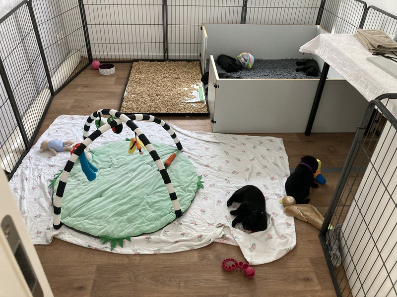 In den nächsten Tagen, pünktlich zum vierwöchigen Geburtstag, ziehen die Welpen in Ihr neues Wohnzimmer um! Die große Freiheit ruft...