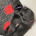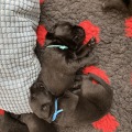 12 Tage alt sind die Welpen heute - Zeit für ein paar neue Bilder und ein kleines Video der ersten 11 Tage :-)! Auch wenn es nach wie vor recht langweilig zugeht, denn bis auf Schlafen und Fressen passiert hier noch rein gar nichts... Alle nehmen täglich fleissig zu und die Aufzucht ist bisher sehr entspannt. Echte Vorzeigebabies, hoffen wir das das so bleibt! Emma macht ihre Sache super und kümmert sich rührend um die Kleinen. Sie scheint stolz wie Bolle zu sein, vorallem wenn Besuch da ist, ist sie nicht mehr aus der Wurfkiste zu bekommen. Mr. Türkis und Mrs. Gelb liefern sich täglich einen Wettkampf, wer am meisten von der Milchbar abgreifen kann. Im Verdrängen der Geschwister von den besten Zitzen, sind sie Spitzenreiter. Beide haben die 1 kg Marke diese Woche geknackt. Seit ein paar Tagen versuchen sich die Welpen mit ersten Gehversuchen durch die Wurfkiste. Das Laufen auf vier Beinen ist zu trollig, dabei fallen sie immer wieder um und rappeln sich wieder auf, fallen wieder um.... Die Koordination muss noch ein wenig geübt werden.