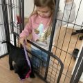 Endlich fand der Umzug ins Welpenzimmer statt! Die 1-Raum-Wohnung wurde langsam zu klein und es wurde Zeit den Horizont zu erweitern. Immerhin sind die Welpen jetzt schon 4 Wochen alt. Nach so vielen Eindrücken des Tages schlafen Mrs. Pink und Mrs. Gelb auch gerne mal im Futternapf ein. Das Welpenklo mit Strohpellets wurde gleich mit aufgestellt und es wird sehr gut angenommen. Zumindest beim großen Geschäft geht kaum noch etwas daneben. Mrs. Rot macht von Tag 1 an vor wie es geht. Unglaublich - egal in welcher Ecke des Raumes sie sich befindet, sie watschelt immer brav auf Toilette wenn sie mal muss, sogar nachts. Die Strohpellets sind klasse - es riecht hier zwar jetzt nicht mehr nach Urin, dafür nach Kaninchenstall :-) Scheint niemanden zu stören, insbesondere Mama Emma säugt und spielt mit den Kleinen gerne auch mal im Klo. Prima Geschichte :-).
