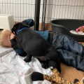 Emma hat die OP erstaunlicherweise gut weg gesteckt. Bereits am nächsten Tag war sie wieder topfit, sie frisst wie ein Scheunendrescher und sorgt sich liebevoll um ihre Kleinen. Auch den Welpen geht es gut, sie schlafen und fressen - mehr Action gibt es hier noch nicht :-). Nach anfänglichen Schwierigkeiten mit dem Milcheinschuss (bedingt durch den Kaiserschnitt) nehmen sie jetzt auch alle fleissig zu.