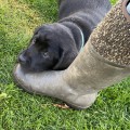 Gestern durften die Welpen dann auch das erste Mal Frischluft schnuppern. Zuerst wurde die Milchbar leer getrunken und im Anschluss völlig ohne Geschrei jede Ecke des noch kleinen Aussenbereichs erkundigt. Immer mit dabei: Mama Emma. Jetzt geht es auch mit der Erziehung los.... Emma macht deutlich wann die Milchbar geöffnet und wann sie geschlossen ist. Dauernuckeln ist jetzt nicht mehr. Den ersten Regen haben sie dann auch gleich mit genommen :-). Gut das es jetzt einen überdachten Kennel gibt, in den man sich mit seinen Geschwistern zurück ziehen kann. Und wärmen tun die Geschwister auch noch.